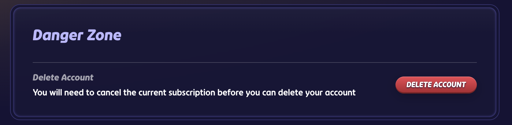 Warning: Please be absolutely sure you want to delete your account before doing this is a permanent action.